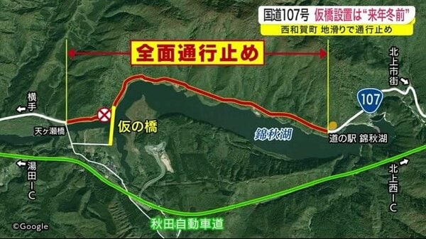 国道107号 仮の橋設置は”来年冬前” 西和賀町 地滑りで通行止め<岩手県