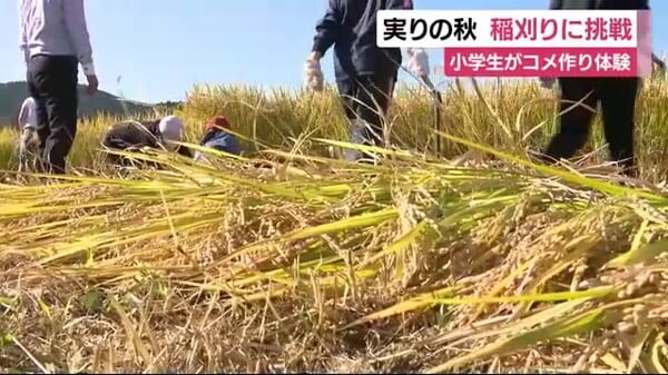 もち米「葵美人」を小学生が収穫 収穫の喜びと苦労感じる 静岡・富士市 - h