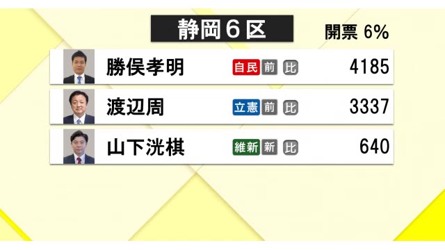6区開票速報(午後9時現在)【衆院選・静岡県】(テレビ静岡NEWS) - Yahoo