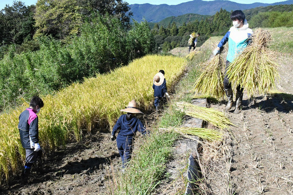 棚田で稲穂、刈り取り 静岡文化芸術大生ら 久留女木の棚田|あなたの静岡新