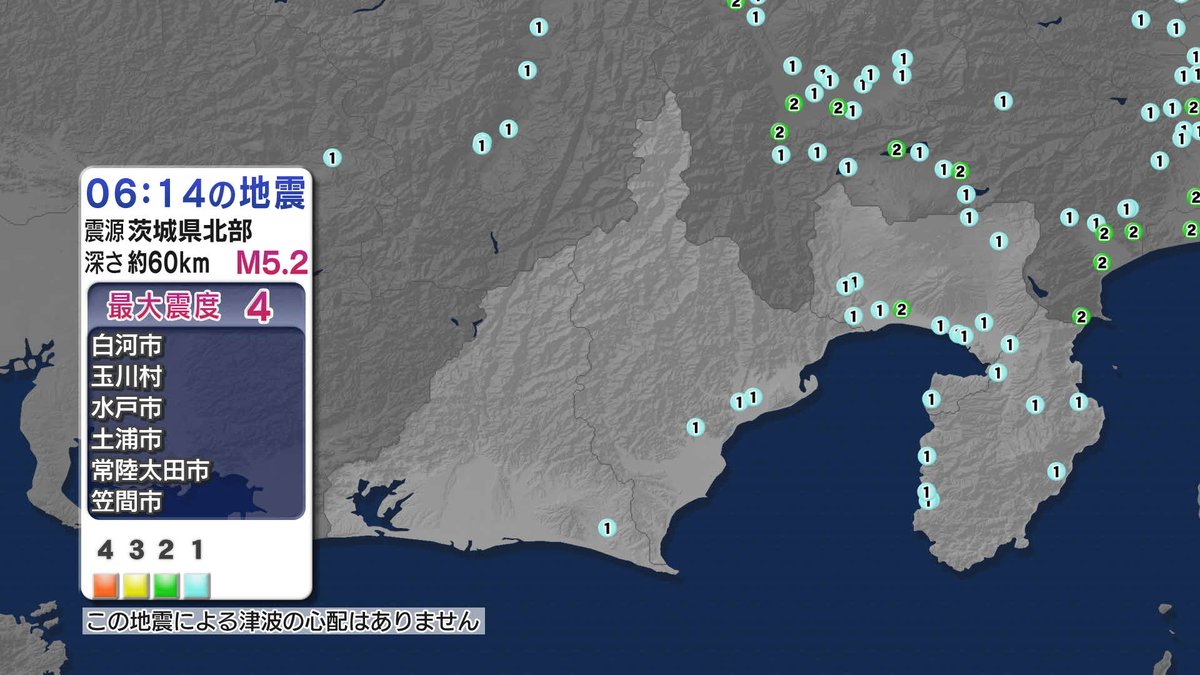【地震速報】茨城県北部で震度4 県内では富士市で震度2など(静岡県)(静