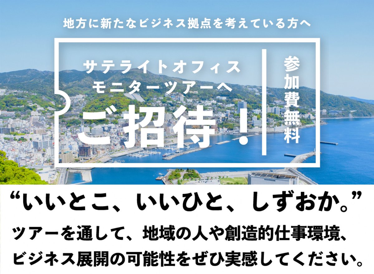 サテライトオフィスモニターツアー第7弾(浜松・湖西)、第8弾(伊東・熱海)の参加者募集中 – All About NEWS https://t.co/f5oPlWgCiu #静岡県 #静岡県東部 #伊東市 https://t.co/h3HC0Qyops