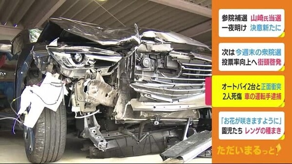 「不注意があった」と供述 女子大生を逮捕 反対車線はみ出しか2人死傷 静岡