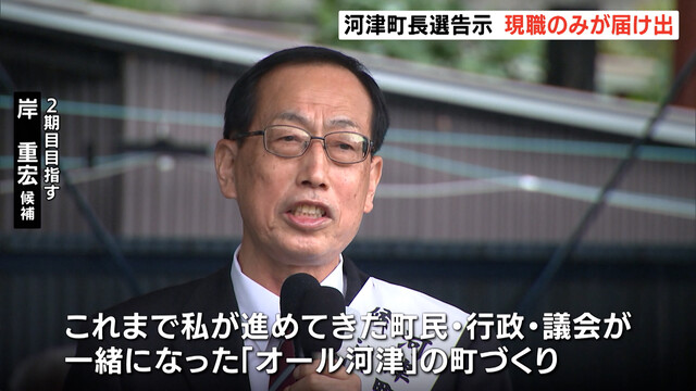 河津町長選告示 現職の岸氏が届け出 無投票の公算大(静岡県)(静岡放送(