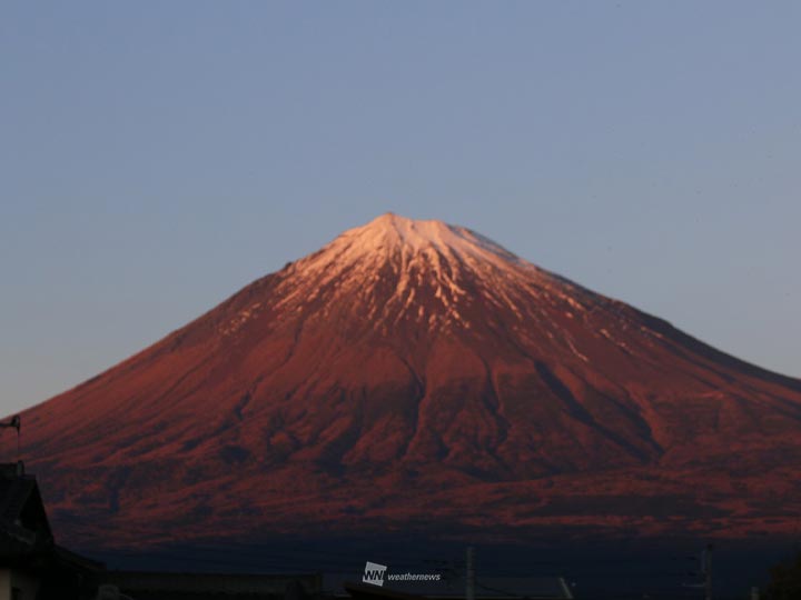 夕日が富士山を赤く染める 山頂付近の雪は少なめ(ウェザーニュース) - Ya