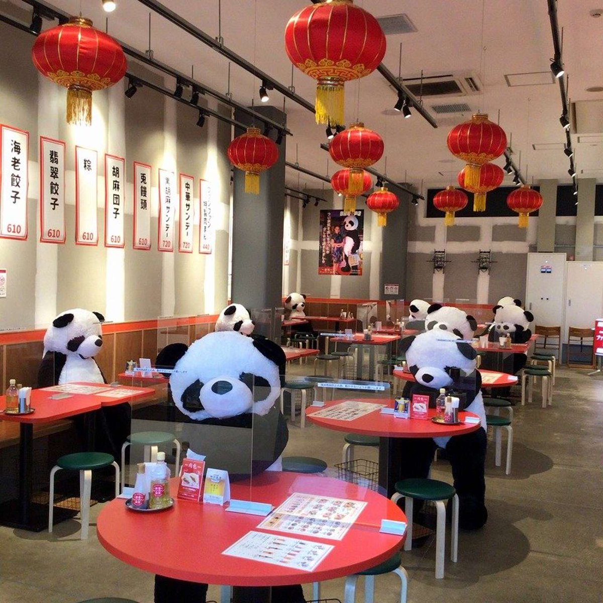 「全員疲れてるパパみたい」? 飲茶レストランの席を埋める特大パンダがシ