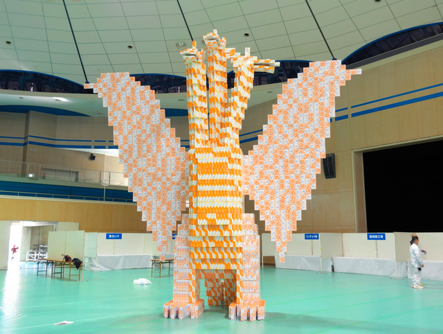 ティッシュ箱で6メートルのキングギドラ 市職員が13時間かけ制作(朝日新聞