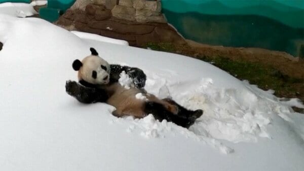 ジャイアントパンダ初めての大雪に大はしゃぎ 中国 - https://t.co/PLVx1L1