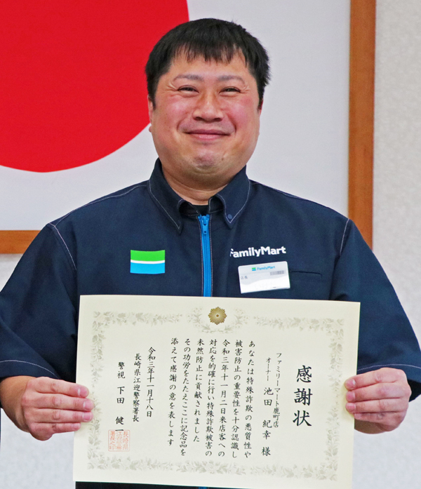 静岡県ニュース > 70代男性の特殊詐欺被害防ぐ コンビニオーナーに感謝状 江迎署(長崎新聞