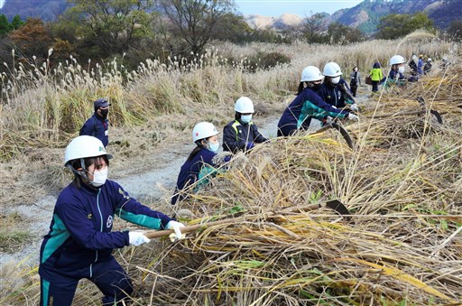 「阿蘇の草原守りたい」 高森高の生徒、野焼きに備え輪地切り体験 - 47NEWS
