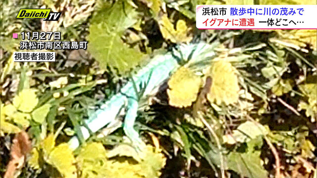 住宅街の川沿いの茂みにイグアナ!?静岡・浜松市南区で市民が目撃 一体ど