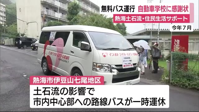 「本当に助かった」被災地で無料バスを運行した自動車学校に感謝状 熱海土