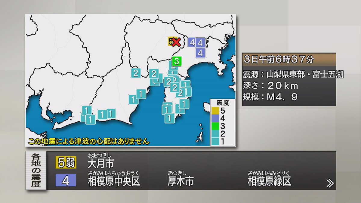 【地震】甲信越地方で震度5弱 静岡県内でも小山町で震度3(静岡朝日テレビ