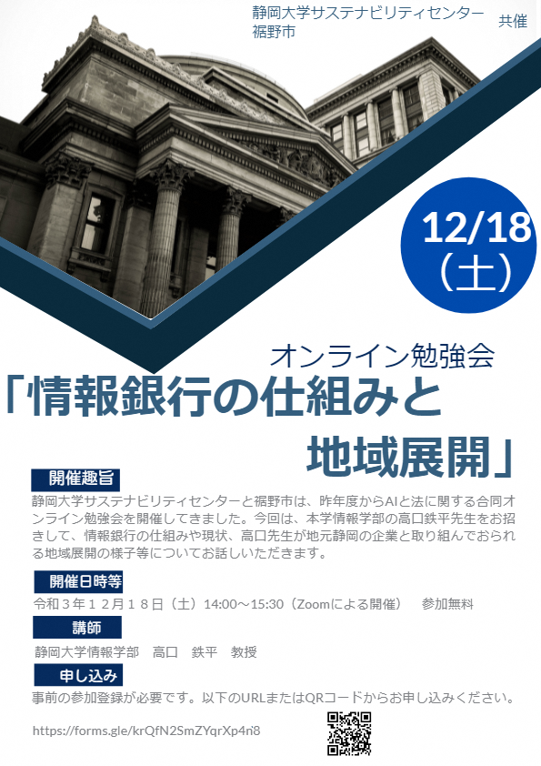 オンライン勉強会「情報銀行の仕組みと地域展開」の開催について/裾野市 -