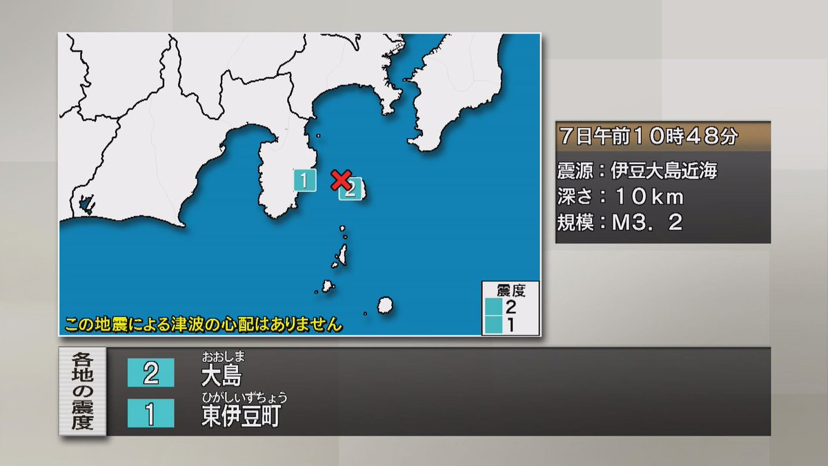 【地震速報】伊豆諸島で震度2の地震 静岡県内は東伊豆町で震度1(静岡朝日