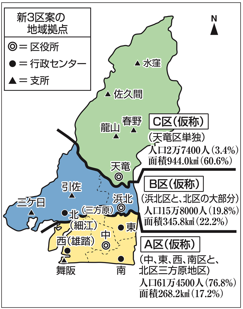 中、浜北、天竜に区役所 浜松市議会特別委、3区案内定【浜松市行政区再編