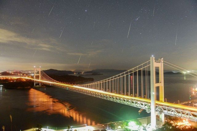 幻想的 瀬戸大橋に降り注ぐ流星群 倉敷科学センター 三島学芸員撮影 - 47NE