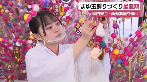 「彩り豊かな一年に」 正月用にカラフルなまゆ玉飾り 静岡・熱海市 - https