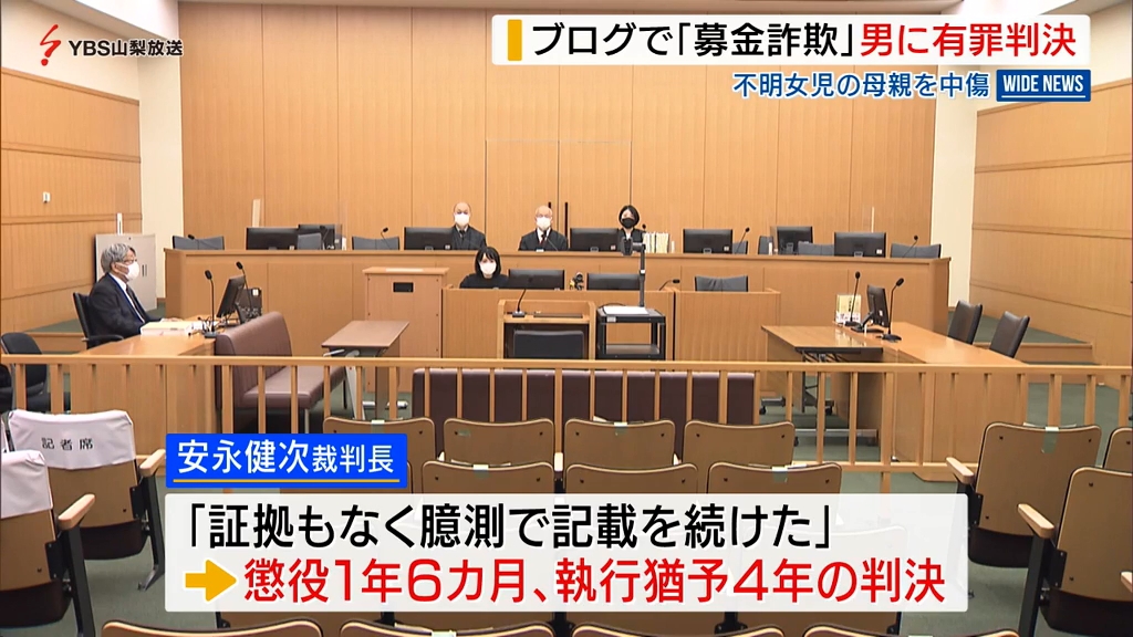 山梨・女児行方不明 ブログで母親を中傷の男に有罪判決(YBS山梨放送) - Y