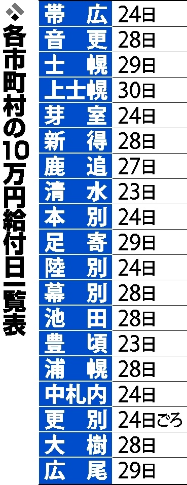 全市町村「10万円」年内開始 清水、豊頃23日皮切り(十勝毎日新聞) -