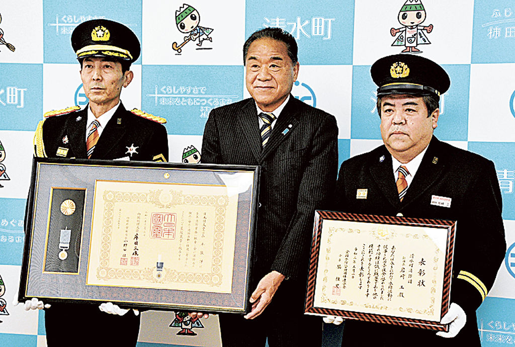 藍綬褒章受章の消防団長ら訪問 清水町長に喜び報告|あなたの静岡新聞 - @