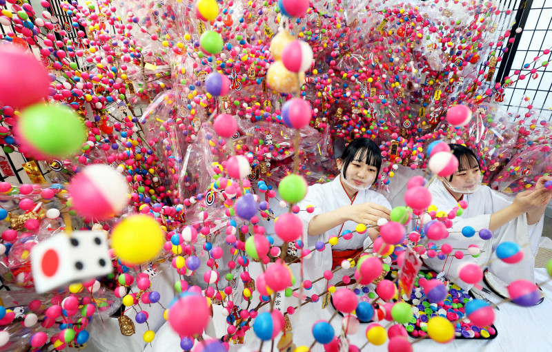 彩り豊かな年になりますように 静岡・来宮神社で「まゆ玉」作り(毎日新聞