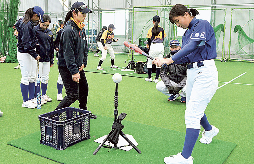 実業団女子ソフト「NECプラットフォームズ」 掛川市の中学生と練習会|