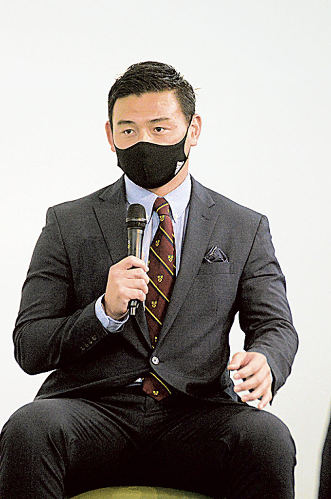 「ラグビー熱全県に」 五郎丸さん(静岡BRCRO)決意語る 21世紀倶楽