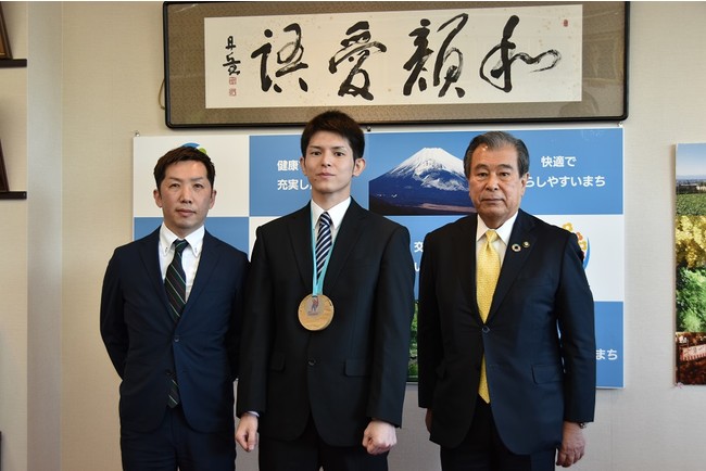 ケイアイチャレンジドアスリートチーム佐藤正樹選手が三島市、豊岡武士市長