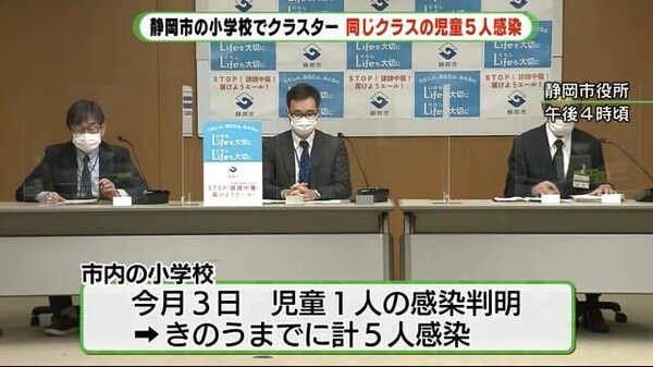 静岡県ニュース > 【静岡・新型コロナ】静岡の小学校でクラスタ-5人感染 学級閉鎖を21日まで