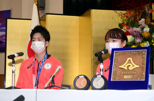 伊藤美誠「水谷選手と一緒にいただけうれしい」静岡県民栄誉賞受賞に笑顔 -