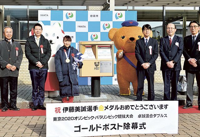 東京五輪金 伊藤美誠選手たたえ金色ポスト設置 磐田市役所 - https://t.co/