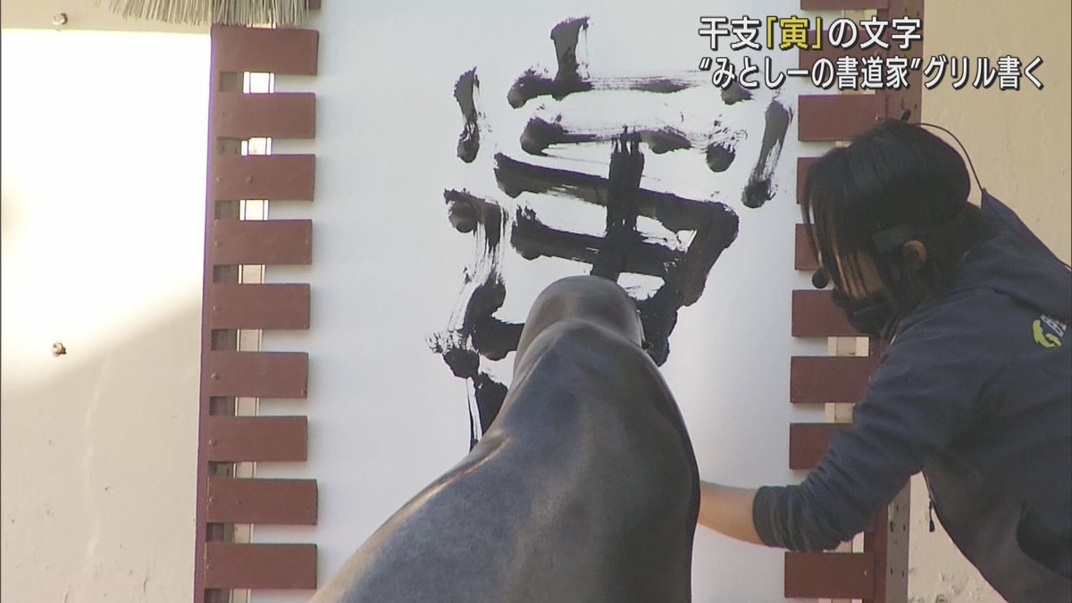 今年の干支「寅」 見事に書き上げた書道家は…アシカのグリル 静岡・沼津市