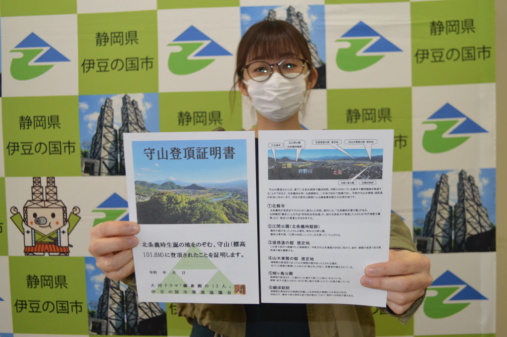 静岡県ニュースでは、静岡県エリアの主要ニュースやお得な情報など配信していきます。>守山山頂で登頂証明書配布 伊豆の国、北条家ゆかりの地説明 - 47NEWS https