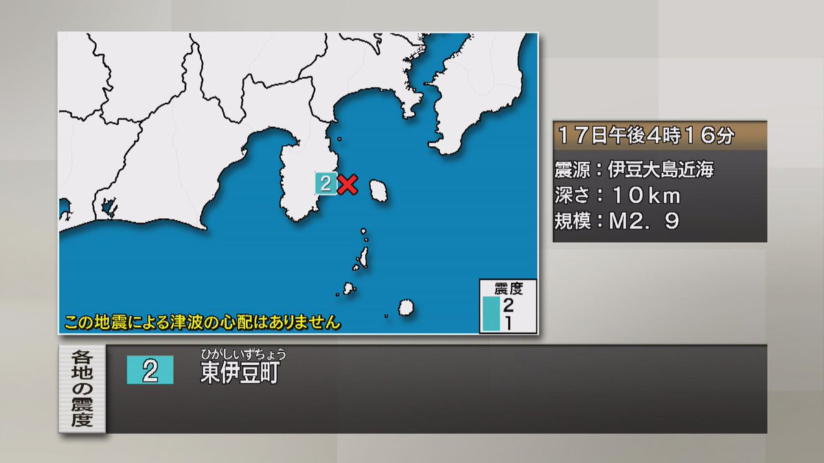 【地震速報】静岡・東伊豆町で震度2 津波の心配はなし(静岡朝日テレビ) -