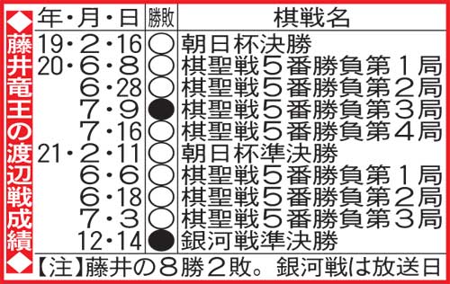 【対戦成績】藤井聡太竜王、渡辺明王将に通算8勝2敗 史上最年少5冠へ -