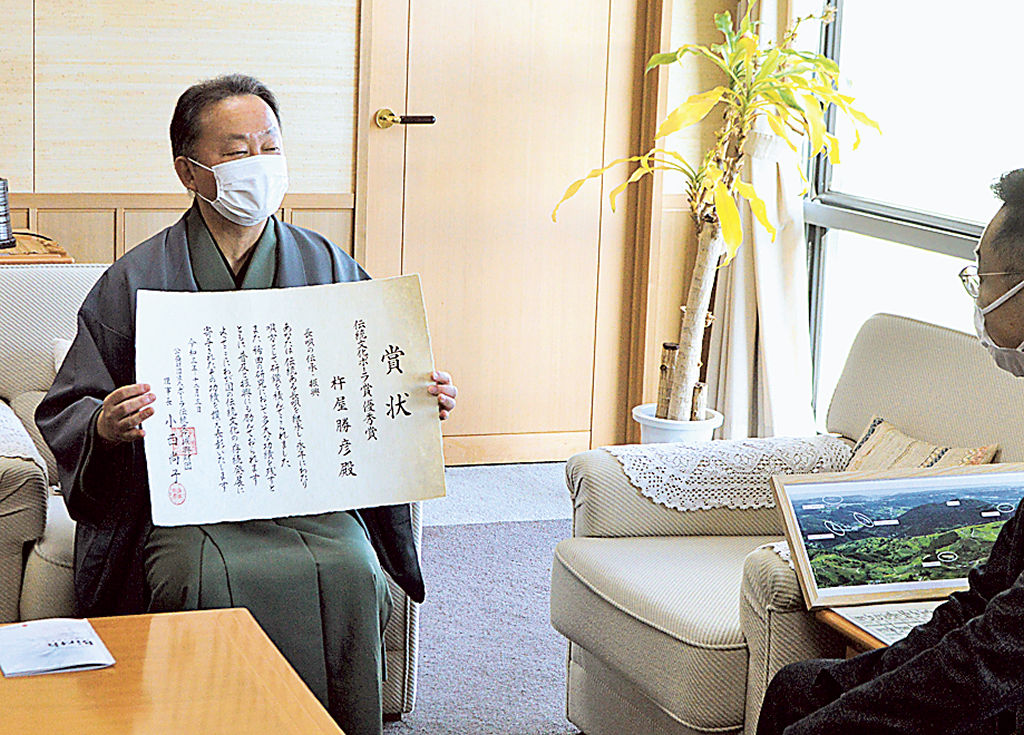 伝統文化ポーラ賞優秀賞 長唄・杵屋さん、掛川市長に報告|あなたの静岡新