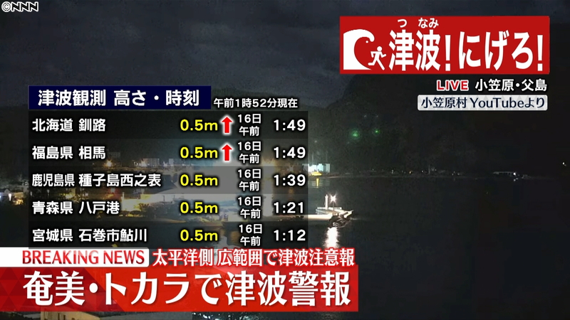 各地の津波到達時刻と高さ(1:52)|日テレNEWS24 - 日テレNEWS24 http