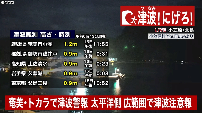 各地の津波到達時刻と高さ(0:43)|日テレNEWS24 - 日テレNEWS24 http