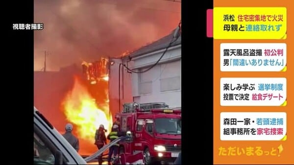 浜松市の住宅密集地で火災 火元住宅の母と連絡が取れず確認急ぐ - https://