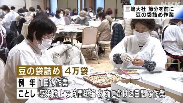 節分前に三嶋大社で豆の袋詰め作業|NHK 静岡県のニュース - NHK NEWS WEB