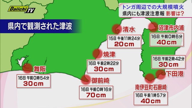 トンガ周辺の大規模噴火で16日、静岡県内にも津波注意報 静岡・下田市で