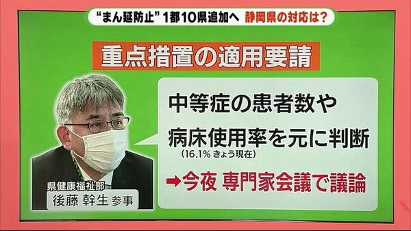 静岡県は? 1都10県がまん延重点措置新たに適用へ 静岡は専門家会議で検討
