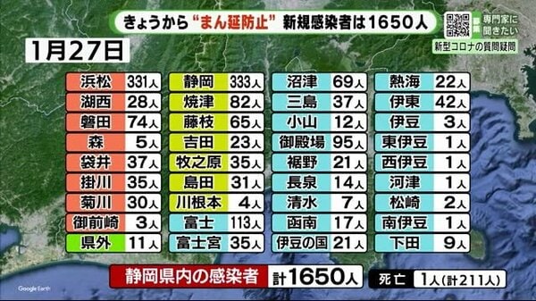【静岡・新型コロナ】新規感染1650人3日連続で最多更新 「まん延防止」適用