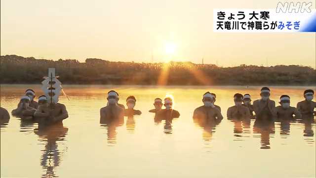 大寒に浜松市の天竜川で若手神職らがみそぎ|NHK 静岡県のニュース - NHK N