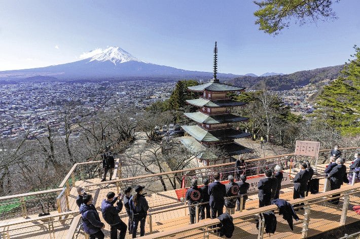 富士山と五重塔が眺められる「絶景」、展望デッキの広さが5倍に…3時間待