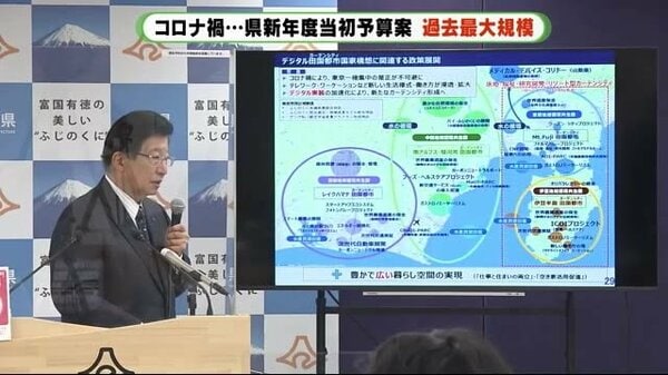 静岡・川勝知事「防疫先進県にする」 過去最高1兆3400億円余の新年度予算案