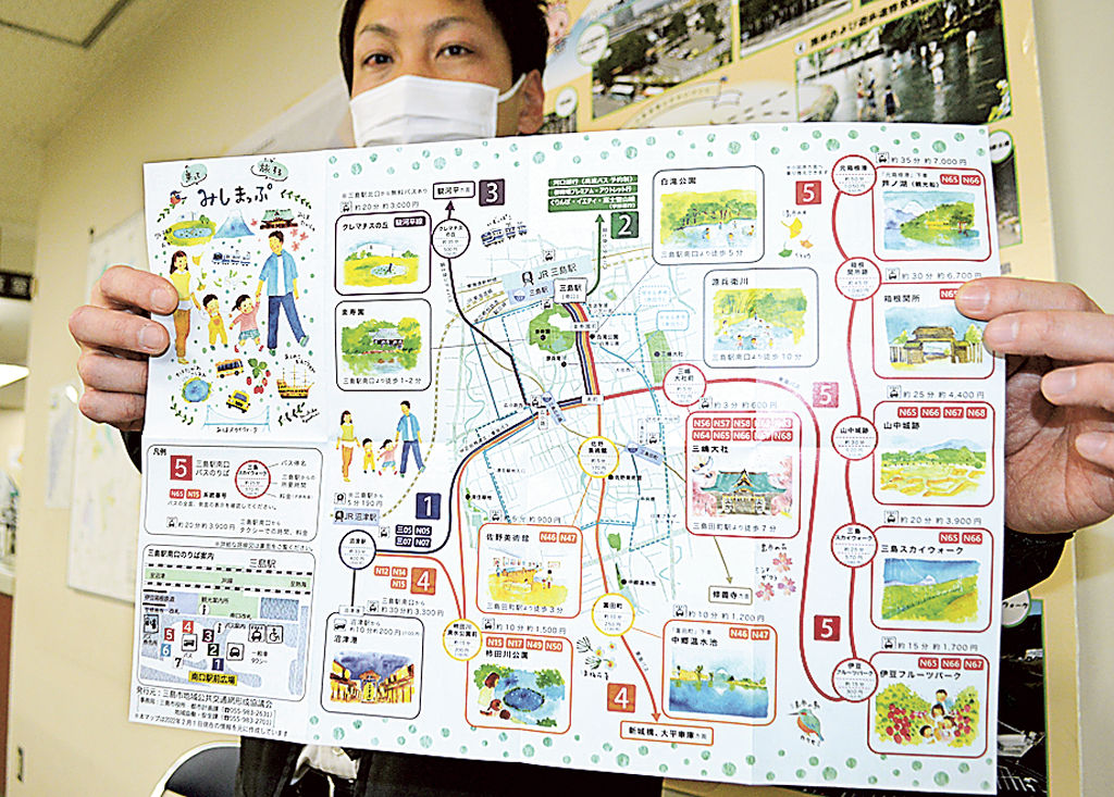 三島観光「バス使って」 市、公共交通マップ作成 地元絵本作家えがしらみち