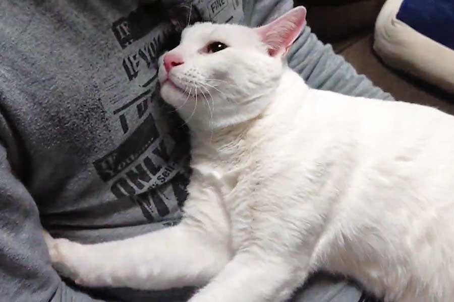 モミモミしながら寝落ちする元保護ねこ 幸せいっぱいの寝顔に反響「私もさ