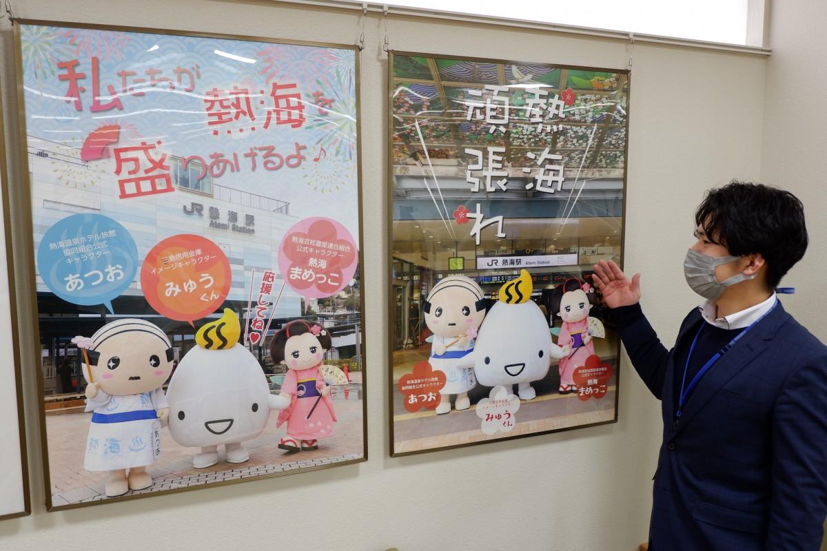 「私たちが熱海を盛りあげるよ」 信用金庫内にご当地キャラのポスターお目